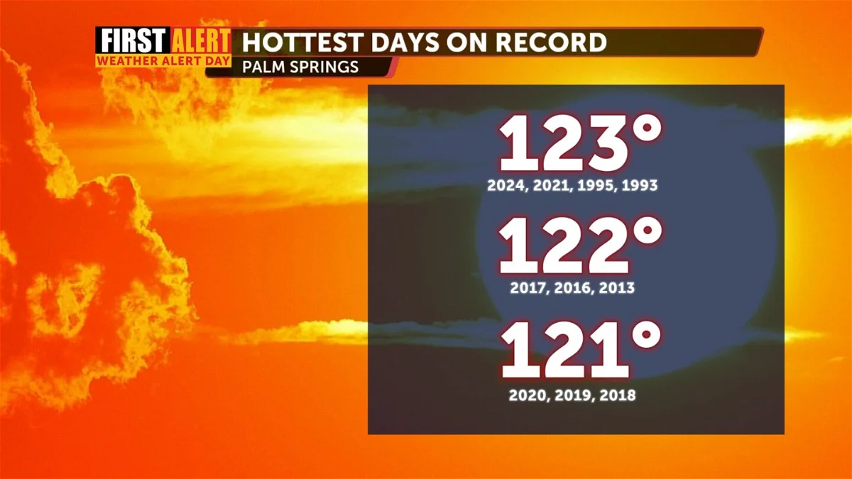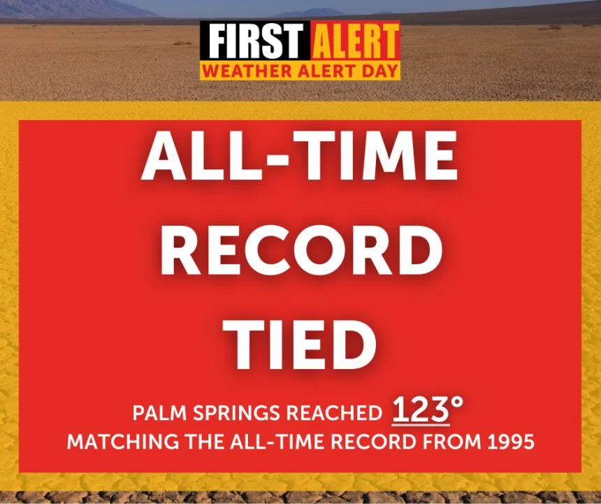 Well, we officially tied a record for the hottest day ever at 123 but at one point it topped off at 124 and Death Valley reached 127. If you notice on the middle picture above those are the top three hottest temps ever recorded in the Palm Springs area and we have been here for eight of the ten times they were set.